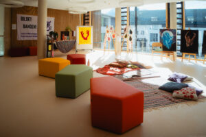 Parallel dazu hält ein liebevoll gestalteter Begegnungsraum viele unterschiedliche Angebote für alle Besucher*innen bereit: Dort können sie Postkarten schreiben, mit Stempeln drucken, Kerzen ziehen, Infostände und eine Kunstausstellung anschauen.