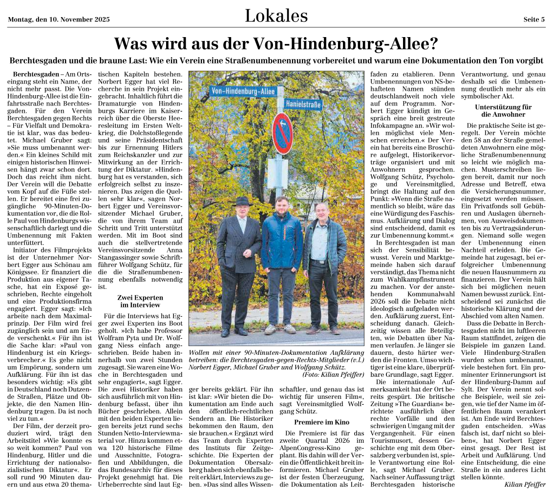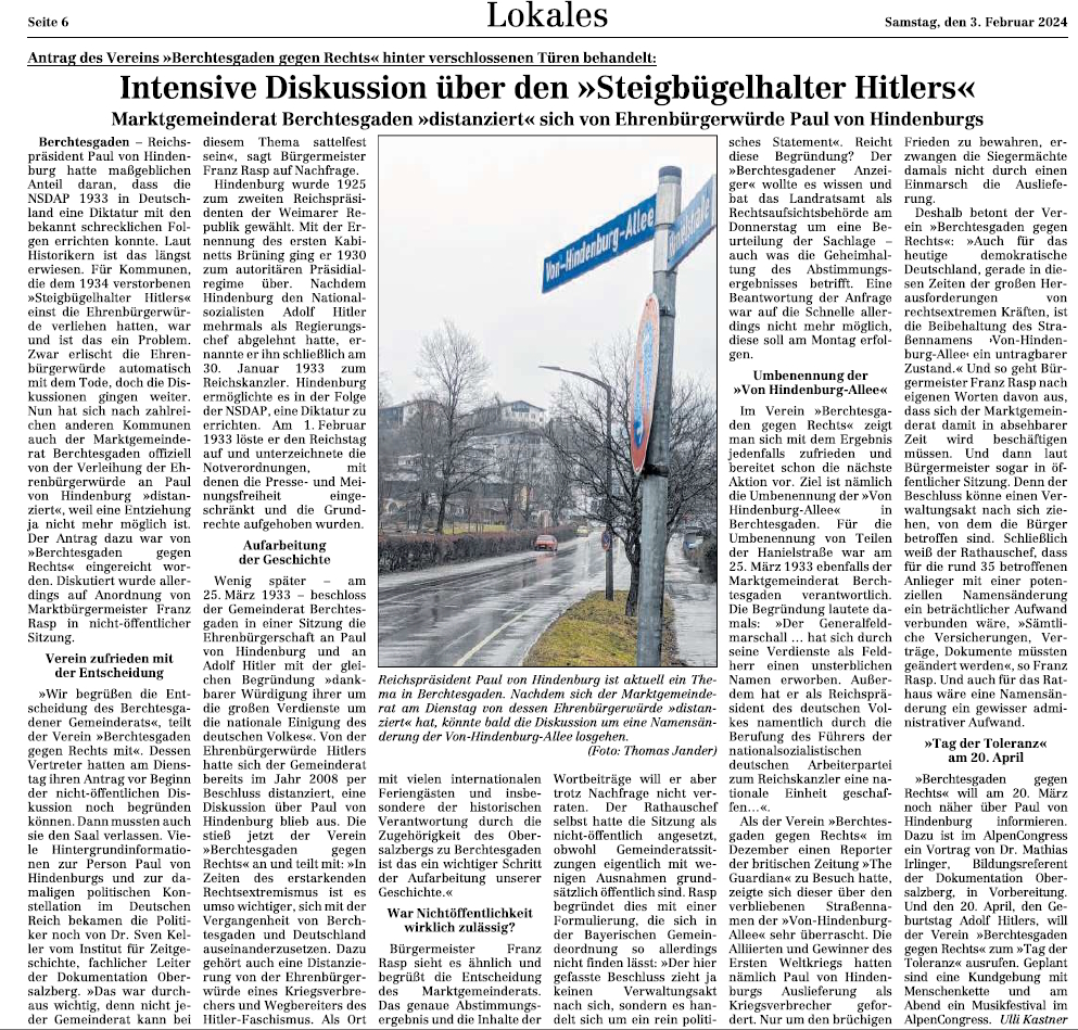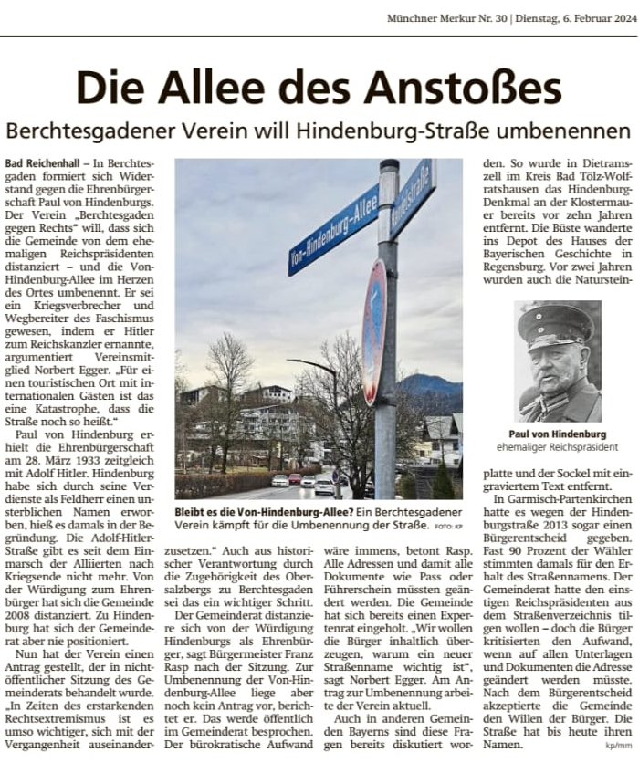 "Was wird aus der Von-Hindenburg-Allee?" Berchtesgaden und die braune Last: Wie ein Verein eine Straßenumbenennung vorbereitet ..."