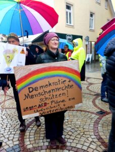 Die AfD macht Wahlkampf in Bad Reichenhall – und wir protestieren dagegen. An den ersten Samstagen waren es nur vereinzelte Demokrat:innen mit Schildern, doch am Samstag, den 21. Februar waren wir über 30 Leute. Auf die Initiative einer unserer Mitstreiterinnen, die den AfD-Stand in Reichenhall bemerkte, haben wir dank ihrer großen Unterstützung am Samstag eine offiziell angemeldete Versammlung auf die Beine gestellt und mit über 30 Leuten protestiert. Wir bekamen viel Zuspruch, in anerkennenden Worten, dass dies sehr wertvoll und wichtig sei, aber auch in Form von Schokobonbons, Plätzchen und angebotenen Warmgetränken.